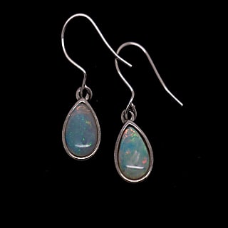 Opal Earrings. Australian Crystal Opal With Pale Green Colour, Green And Red Gem. Set In Sterling Silver Bezel, On Shepherd Hooks. Opal Earrings. Australian Crystal Opal With Pale Green Colour, Green And Red Gem. Set In Sterling Silver Bezel, On Shepherd - 1 Pair